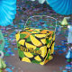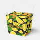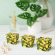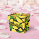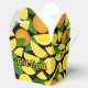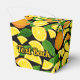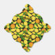Orangefarbene Scheiben und Blätter. Nahtloses Muster. Benutzerdefinierte Hintergrundfarbe. Benutzerdefinierter Text auf beiden Seiten.