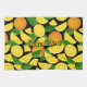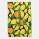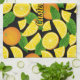 Orangefarbene Scheiben und Blätter. Nahtloses Muster. Benutzerdefinierte Hintergrundfarbe. Eigener Text.