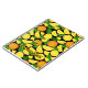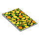 Orangefarbene Scheiben und Blätter. Nahtloses Muster. Benutzerdefinierte Hintergrundfarbe. Eigener Text.