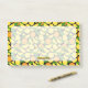 Orangefarbene Scheiben und Blätter. Nahtloses Muster. Benutzerdefinierte Hintergrundfarbe. Eigener Text.