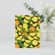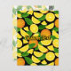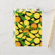 Orangefarbene Scheiben und Blätter. Nahtloses Muster. Benutzerdefinierte Hintergrundfarbe. Eigener Text.