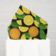 Orangefarbene Scheiben und Blätter. Nahtloses Muster. Benutzerdefinierte Hintergrundfarbe.