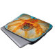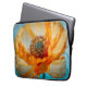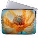 Eine von der KI generierte orangefarbene Blume mit leuchtend blauem Hintergrund