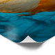 Eine von der KI generierte orangefarbene Blume mit leuchtend blauem Hintergrund