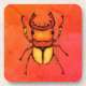 Lebhafter orangefarbener Käfer-Untersetzer mit einer künstlerischen Abbildung eines Hirschkäfers mit großen, gemusterten Antiquitäten in lustigen Gelb- und Orangetönen auf süß-rosa Hintergrund. Großartiges Geschenk für ein Mädchen, das sich für Insekten interessiert.