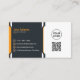Aktualisieren Sie Ihr Netzwerkspiel mit dieser Orange Beruflich Modern Corporate Business Card. Die Vorderseite zeigt Ihren Namen, Titel, Kontaktdetails und einen scannbaren QR-Code mit einem ausgefeilten Layout, während die Rückseite Platz für Ihr Logo und Ihre Website bietet. Saubere Linien und ein dunkelorangefarbenes Farbschema sorgen für ein glänzendes, berufliches Erscheinungsbild, das sich perfekt für professionelle Unternehmen eignet.