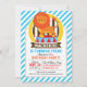 Orange Big Top Circus Lion; Blaue und weiße Streif Einladung