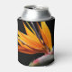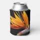 Behalt deinen Pop und andere Getränke kalt mit dieser trendigen, isolierten kann kühler, das Foto der Orangenblüte eines tropischen Bird of Paradise Pflanze Blume auf einem schwarzen Hintergrund. Auch als Krane-Blume bezeichnet. Ein schönes, blumengeschmücktes Design! Ideal für luftige und tropische Party.