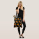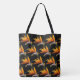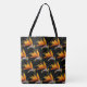 Dekorative Tasche für Einkäufe, Reisen und mehr und zeigt das Foto einer orangefarbenen Blüte der tropischen Bird of Paradise Pflanze, gedruckt in einem wiederholt aufgedruckten Muster auf einem schwarzen Hintergrund. Auch als Krane-Blume bezeichnet. Ein atemberaubendes Blumendesign!