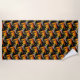 Orange Bird of Paradise Pflanze Pattern auf Schwar Strandtuch