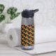 Ob im Fitnessraum oder im Joggen im Park, bleibe mit dieser durchsichtigen Plastikflasche, die das Foto einer orangefarbenen Blüte der tropischen Pflanze "Bird of Paradise" in einem sich wiederholenden Muster auf schwarzem Hintergrund wiedergibt. Auch als Krane-Blume bezeichnet. Ein atemberaubendes Blumendesign! Wählen Sie die Größe und Farbe der Wasserflasche aus.