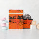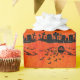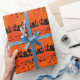 Diese coole, kleine, spöttische Szene aus Friedhöfen mit Kopfsteinen, Kreuzen und Fledermäusen. Schwarze Silhouette auf knisterndem, orangefarbenem Hintergrund. Ideal für halbwegs Einladungen, vielen Dank, Dekorationen und mehr!