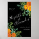 Orange & Black Gothic Peony Rose Blumenhochzeit Poster