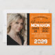 Einladung von orangefarbenen, schwarzweißen und weißen Abschlüssen - 1 Foto auf schwarz wiederholtem Klassenjahr zurück gedruckt oder digital // herunterladbar