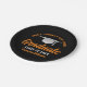 Diese moderne, orange und schwarz gefertigte Senior Graduation Party Serviette enthält Ihren High School- oder Uni-Namen für die Klasse von 2025. Passen Sie mit Ihrem geschlossen Jahr unter der schicken handgeschriebenen Drehbuch-und weiße Graduiertenkappe für große personalisierte Graduiertendekoration an.