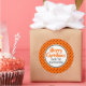 Aufkleber für Feriengeschenke mit einem orangen und schwarzen Polka Dot Hintergrund. Der "Frohe Weihnachten" Gruß und wer es ist, kann geändert werden.