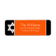 Orangefarbene und schwarze Bar Mitzvah-Rücksendeadressen-Aufkleber. Matching-Produkte verfügbar.