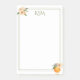 Diese personalisierten Monogramm-Post, die es notiert, enthalten Aquarellbilder von Orangen und weißen Blume.