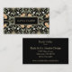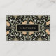 Looking for business cards that exude elegance? The Orange Blossoms Botanical Business Card features an elegant pattern as the background, with the company name front and center. The back of the card details the business card holder's information in tan text on a black background.