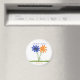 Auf Magneten gedruckt, blau und orange Blume mit Platzhaltern für Namen und Datum. Einfach auf einem Vorlagenformular anpassen. Entsprechende Produktauswahl anzeigen: