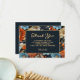 Elegante Geburtstagsparty "Danke" Karte mit orangen und blauen Blumen auf schwarz. Kontaktieren Sie mich, um Hilfe bei Ihren Anpassungen zu erhalten oder um zusätzliche Matching oder Koordination von Zazzle Produkten für Ihre Feier zu beantragen.