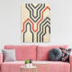 Grafische orange und blaue Linien durchqueren dieses Stück von Chariklia Zarris. Die orangefarbene Linie durchschneidet den Großteil der Arbeit, während die Blues ein erkennbares Muster aufweisen. Kaufe deine noch heute!