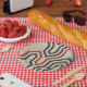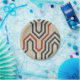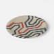 Grafische orange und blaue Linien durchqueren dieses Stück von Chariklia Zarris. Die orangefarbene Linie durchschneidet den Großteil der Arbeit, während die Blues ein erkennbares Muster aufweisen. Kaufe deine noch heute!