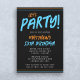 Eine coole orangefarbene und blaue Geburtstagsgeschenk-Einladung. Diese trendige Einladung eignet sich perfekt für einen kleinen Geburtstag zwischen 10 und 10 Jahren. Der fette grunge Schriftart Pop auf dem schwarzen Hintergrund. Bearbeiten Sie diese laden Sie sich ein!