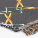 Abstraktes Design mit einem orangefarbenen und blauen Metallnetz auf schwarzem Hintergrund. Dieses elegante, moderne Design, basierend auf keltischen Knoten, bringt eine stilvolle Touch in Ihr Zuhause-Dekor mit seinen schlichten Farben und atemberaubenden geometrischen Formen.