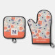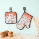 Orange & Blue Modern Blume Pattern Ofenhandschuh & Topflappen-Set