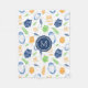 Orange Blue Owls Feathers Pattern Monogram Blanket Fleecedecke