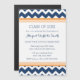 Individuelle magnetische Graduierung Party Einladungskarte in schicken und eleganten hellen orange, dunkelblau und weiß Retro Zickzack Zickzag Streifen Muster.