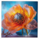 Eine von der KI generierte orangefarbene Blume im blauen Hintergrund