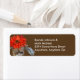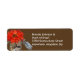Adressetikett für die Hochzeit oder für jeden Anlass. Rustikales Hochzeitsbild mit der hellen orangefarbenen Blume in der Glaskeramik. Das Glas ist teilweise mit kleinen Felsen gefüllt. Die Glaskeramik befindet sich auf einem rustikalen Holztisch. Ideal für jede Jahreszeit, aber in der Frühlings- und Sommerkategorie. Personalisieren Sie diese Vorlage mit Ihren Informationen.