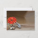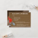 UAWG & Menü Karte. Rustikales Hochzeitsbild mit der hellen orangefarbenen Blume in der Glaskeramik. Das Glas ist teilweise mit kleinen Felsen gefüllt. Die Glaskeramik befindet sich auf einem rustikalen Holztisch. Ideal für jede Jahreszeit. Personalisieren Sie diese Vorlage mit Ihren Informationen.