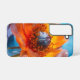 Eine von der KI generierte orangefarbene Blume im blauen Hintergrund
