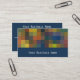 Eine Visitenkarte für viele Geschäftsarten, mit Kästchen in gebranntem Orange, Braun und Marine, mit weißen Schriftzeichen auf marineblau-blauem Hintergrund. Vollständig und einfach anpassbar.