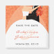 Trendy Save the Date Magnete, mit einer Braut und Bräutigam auf einer Mandarine und orangefarbenem Hintergrund Fügen Sie Ihre Informationen in unserer leicht zu bedienenden Vorlage hinzu, oder klicken Sie auf "Anpassen", um Text zu bearbeiten. Bild © JD Digi Designs