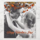 Eine Mischung von Designs mit handgemalten Orange- und Braunblättern auf der Oberseite und unten, sowie ein persönliches Foto oder Bild für ein einmaliges Valentinstag-Weingeschenk.