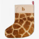 Weihnachts-Strumpf mit orangefarbenem und braunem Giraffenprint und Monogramm/Inital an der Spitze