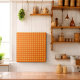 Die karierte Keramik mit orangefarbenen Buffalo-Fliesen und einem lebendigen Muster verleihen den Weihnachtsvorstellungen einen fröhlichen Flair.