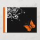 Schwarz, Weiß und Orange - mit einem orangefarbenen Schmetterling auf schwarzem Hintergrund und hübschen Wirbel mit Blumen. Die Karte hat eine orange-weiße Linie auf der Seite. Text und Schriftart können leicht geändert werden. Die Hintergrundfarbe kann auch geändert werden, um Ihren eigenen Stil wiederzugeben. sgb01
