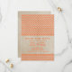 Moderne mit Vintager Drehung ist dieses schicke Zickzack Ankündigung Datum freihalten. Dieses Design ist mit einem antiken Papierhintergrund und einem Zickzack Zickzackmuster in Orange gestaltet. Einfach anpassen, einfach Ihre Hochzeitsdetails hinzufügen. Klicken Sie auf "Anpassen", um weitere Personalisierungsoptionen zu erhalten.
