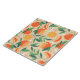 Keramik Kachel mit Retrovibe. Ein Muster aus geschnitten Orangen, Orangen, grünen Blätter und weißen Blüten.