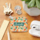 Ein Schlüsselanhänger mit einem Retro-Ambiente. Ein Muster aus geschnitten Orangen, Orangen, grünen Blätter und weißen Blüten.