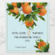 Orangen in grünen Blätter mit weißen Blüten eingebettet.