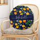 Orange Citrus Sommer Floral Botanisches Muster Rundes Kissen