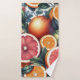 Brighen Sie Ihr Bad mit unserem Orange Citrus Badehandtuch! Mit tropischen Früchten, Zitronen, Limonen und blumigen Akzenten, die ein lustiges, skurriles Aquarelldesign vermitteln. Ideal für Frühling und Sommer - weich, modern und elegant botanisch.