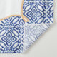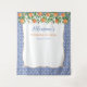 Hintergrund mit Aquarellorangen / Blätter / hübschen Blüten an einer blauen und weißen Kachelgrenze. Ich habe Einladungen und andere Schreibwaren im gleichen Design (siehe Sammlung).