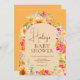 Helle Country blumenfarbene Babydusche Einladung in pastellfarbenen Retro Land rustikale Orange, mit einer rustikalen Touch mit Blumenbeeten aus dem Land mit hübschen Gartenlandsonnenblumen, Rose und Blume rund um den Bogen.